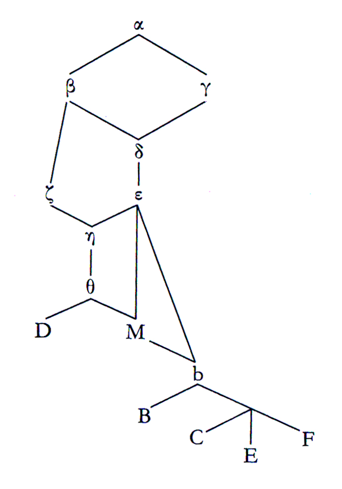 Fig. 1. A closed recension. In this stemma, any manuscript (or, in square brackets, hyparchetype) is the copy of only one exemplar. From West (1973, 32).