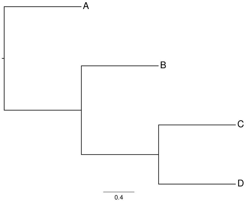 Fig. 1. A tree with branch (B, (C, D)).